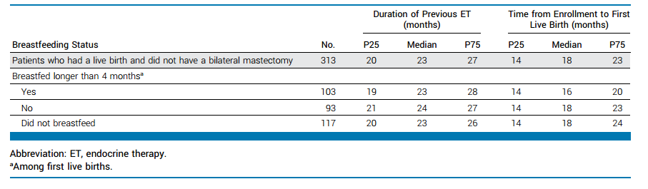 Peccatori FA,Niman SM,Partridge AH,et al.Breastfeeding After Hormone Receptor-Positive Breast Cancer:Results From the POSITIVE Trial.J Clin Oncol.Published online July 9,2025.doi:10.1200/JCO-24-02697