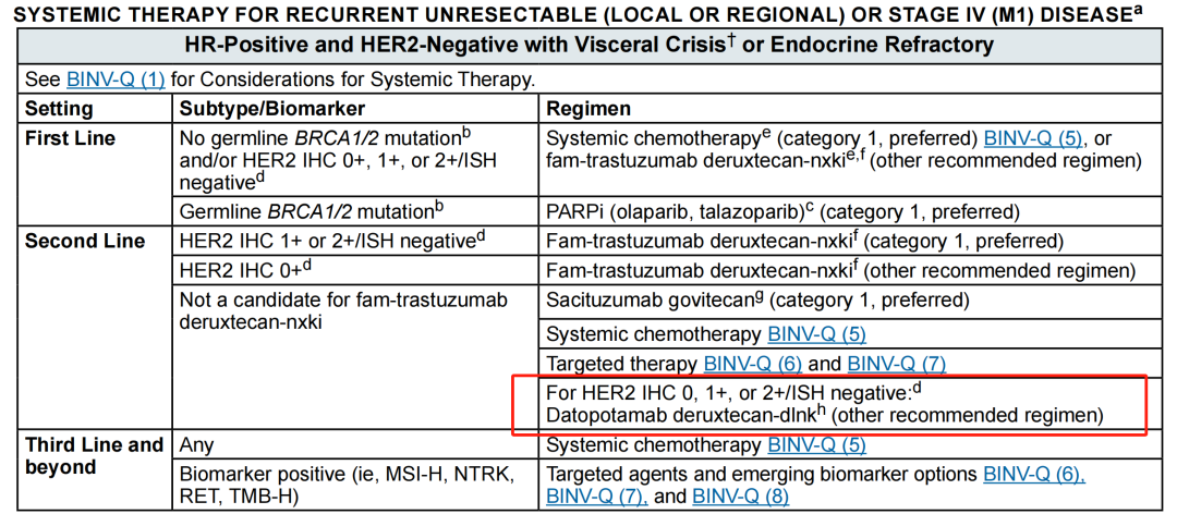 △从2025 v1.版开始,NCCN指南推荐Dato-DXd作为HR+/HER2-内脏危象或内分泌难治性患者的二线治疗