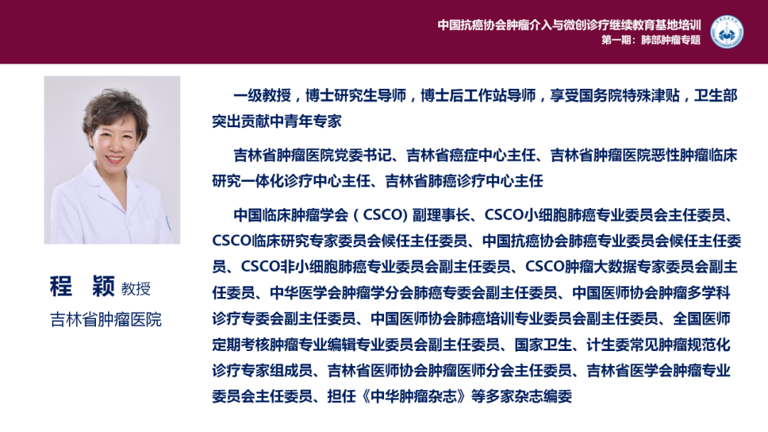 中国临床肿瘤学会(CSCO) 副理事长、吉林省肿瘤医院党委书记、吉林省癌症中心主任、肿瘤内科专家:程颖 教授