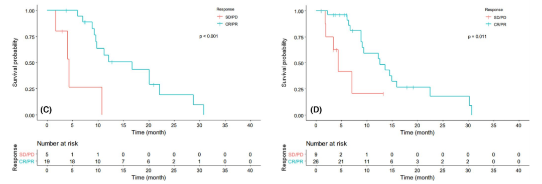△TAE达到CR/PR的患者PFS显著延长(C.肝转移负荷25%~50%;D.肝转移负荷>50%)